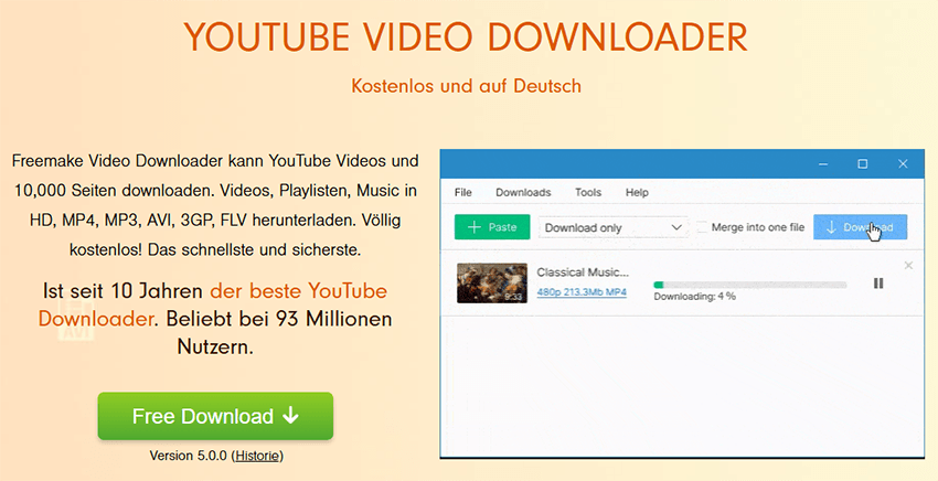 Allerdings ist Freemake Video Downloader zwar einfach und leicht zu bedienen, doch seine Download-Geschwindigkeit ist begrenzt, und heruntergeladene Videos erhalten dauerhaft ein Plattform-Wasserzeichen.