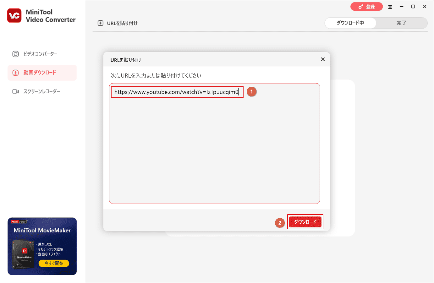 ステップ4:ポップアップ ウィンドウで、コピーした動画リンクを編集ボックスに貼り付けて、「ダウンロード」をクリックします。